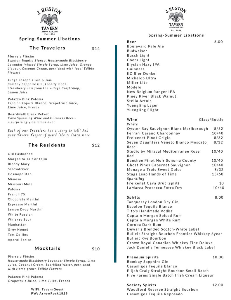 Click here for a printable pdf of our Spring-Summer Libations Menu