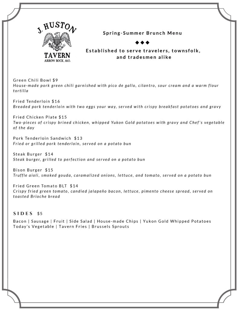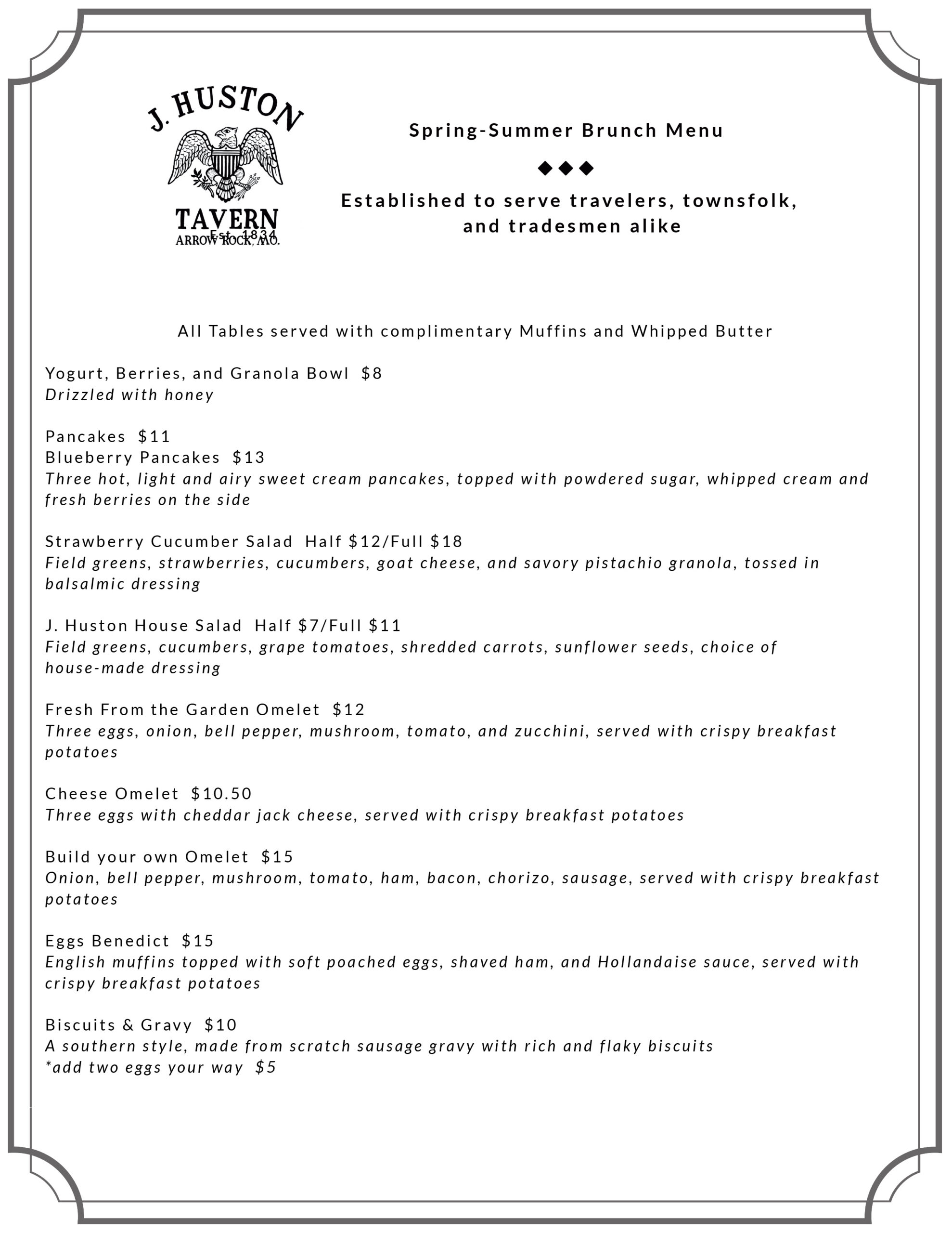 Click here for a printable pdf or our Spring-Summer Sunday Brunch Menu
