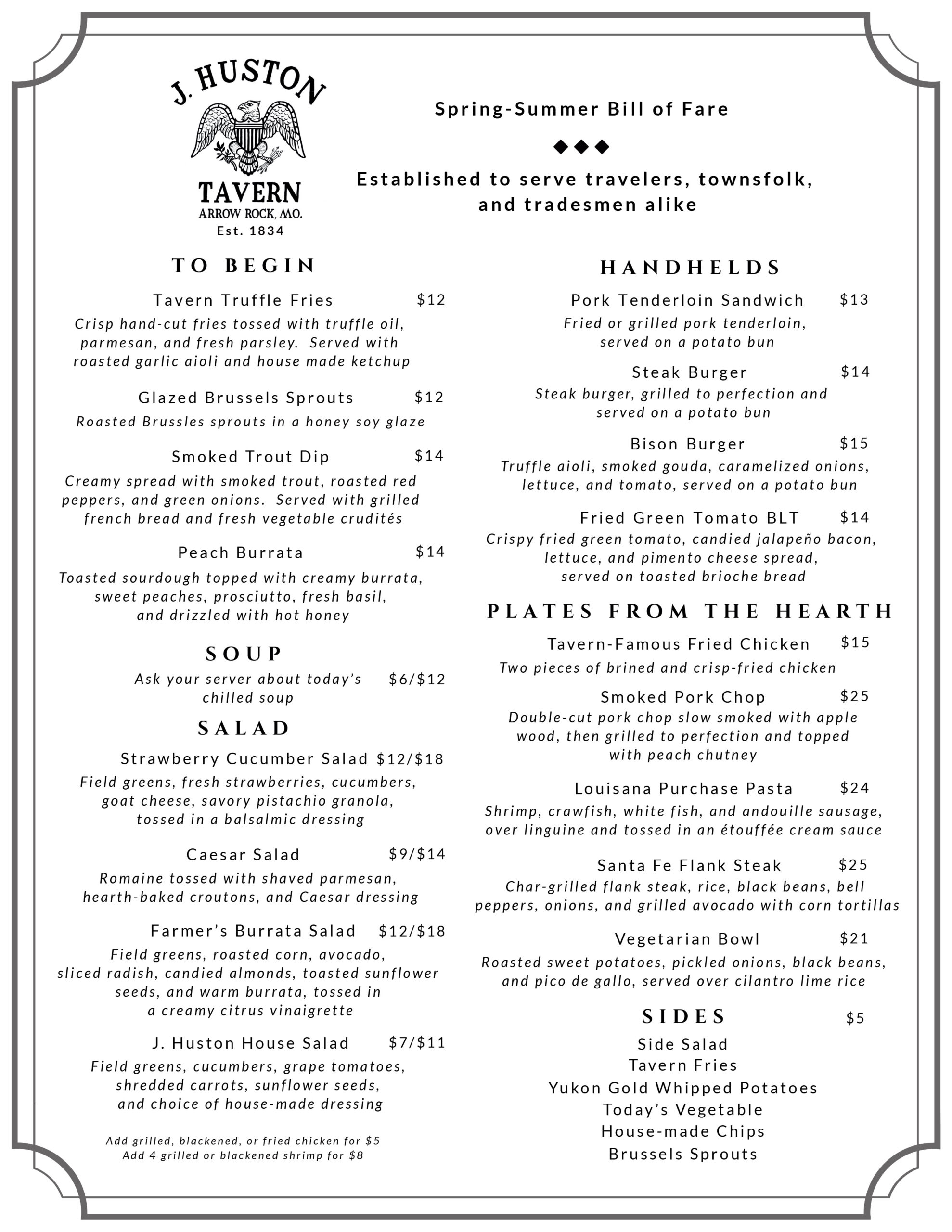 Click here for a printable pdf of our Spring-Summer Menu